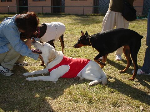 今日は朝から。。。心臓バクバクの母(;@◇@;)キェ~~~ そう!!今日は、母&小悪魔ちゃん『二人旅』\(☆■☆)/ワァオ ライラ母ちゃんに、行きつけの《ドッグラン》に誘われ・・・ のび太は仕事だけど。。。母は行く決意を固めた(゜■゜)/オォーーー 母は《ドッグラン》...小悪魔ちゃんと二人で行くのは、二回目( ̄- ̄;)ウン 前回は、小悪魔ちゃんは悪コしてないっっっ( ̄◆ ̄)/ 『狂犬&狂人』に出会ってしまい...最悪の結果に終わった(`∞´)/キィーーー それだけに、母は今度あんな事があったらどうしよう(-_-;) 母が一人で、小悪魔ちゃんを守れるだろうか・・・ ライラ母ちゃんに、迷惑掛けてしまわないだろうか・・・ 眠れない夜を過ごし。。。決戦の朝が来たぁぁぁ(⌒O⌒)/ 母は、迎えに来たライラの顔を見て。。。覚悟を決めた(*^~^*)ヘヘヘ ライラは、いつも可愛い笑顔を振り撒いて、母はニタニタ笑ってしまう☆ しかし!!母は忘れず、二人に忠告・・・ 『のび太不在やから。。。母は鬼になるでぇぇぇ~(`■´)/~~~ピシッ』 これを聞いた、ライラ母ちゃん&姉ちゃん。。。笑ってるし(-_-;)アァ 母は見送りの、コニー父を残し←ライラチェックに来てました(≧m≦)プッ コニー&ライラのベッピン勝負。。。両者引き分け( ̄0 ̄)/ そんなこんなで、慌しくいざ出発ぅーーーー♪♪ 楽しくおしゃべりしてたら。。。《ドッグラン》に着いた( ̄~ ̄;)キンチョー 母はいつもより、何倍もの力を手に込めて...小悪魔ちゃんを誘導(;=_=;)ドキドキ ライラ家と一緒に、ラン内に入って行った・・・ いっぱいのワンコが、一角に集まってる(-_-?)ウゥン? 母はこれは好都合。。。小悪魔ちゃんを正反対の場所で放した(^O^)//ソレ~ 小悪魔ちゃんは、まず外周を回っていろんな草を刈り(ーー;)オイオイ その間にも、いろんなワンコに挨拶して、ご機嫌で走ってるぅ~~~(/∇;)ウゥ ライラは、いつもの場所じゃないから。。。恐々走る(⌒m⌒)フフフ でも。。。2匹とも悪コなしで、良いコでウロウロ~~~☆ 落ち着いて来るとラン内で、躾教室をやってるらしい事が発覚!! 《ドッグラン》側が、先生に場所を提供して。。。たまに開催してるらしい(-.-) 母は、ちょびぃ~~~っと迷惑だな!!なんて思ってしまった(;~▼~;)ハハハ でも。。。小悪魔ちゃんは悪コにも行かないし(゜-゜)/ハイッ こちら側で、ライラを『舎弟』につけて、ご機嫌で遊んでる(^▽^)/ たまに、大きなラブちゃんがシツコクするので。。。『ガウガウ』威嚇★ でも。。。母が『あ・ず・きぃーーーー』大声で呼ぶと止まる!! 母は途中から、のび太がいないのを忘れてた・・・ ライラ家との《ドッグラン》。。。サイコ~~~に、満喫出来たっっっ♪♪ 母は、小悪魔ちゃんの成長を、全然評価出来てなかった(; ̄▼ ̄A)冷汗 母が思う以上に...成長してるんだ(゜-゜)/ ホントに小悪魔ちゃんは、いろんな場所に対応出来るようになってる。 なぁ~~~んと☆ビックリ 今日はライラと一緒に『爪切り』&『カフェ』まで経験して来た(≧▽≦)/ カフェでも、小悪魔ちゃんはたまに顔を出すが・・・ ちゃんと『伏せ』をさせていると、大人しく寝転びだした(°▽°)オォ 母は、キンチョ~ながらも食事をして。。。楽しい帰路に着いた(^▽^)/~~~ 今日は、ライラ家にメチャ感謝ですぅ~(^O^)/ 小悪魔ちゃんと、いろんな経験をする事が出来た!! 母は一日結構キンチョ~してたけど。。。メチャ爽快の気分でしたv(≧▽≦)vブイッ なんとビックリ~~~(◎∇◎)オォ ライラちゃんとお揃いの『手編みのセ~タ~』までお土産に頂いた!! あずきの名前入りの、メチャ可愛い暖かなセ~タ~・・・ ライラ母ちゃんが心を込めて、編んでくれたんだよ(;´▽`;)エェ~~~ン 母は今日の、小悪魔ちゃんとの『二人旅』絶対に忘れない(゜-゜)ウン これからも、ドンドン二人でいろんな場所に行こうね☆ 遅れましたが。。。ライラ母ちゃん&姉ちゃん、マジありがとう(゜▽゜)/ 本当に大切に...セ~タ~着させて頂きますm(__)m ライラちゃん...小悪魔ちゃん...テー吉...お揃いの大切なもの♪ 今度は3匹で一緒に、集合写真撮ろうね。。。お揃いのセ~タ~で(⌒~⌒)/ テー吉&のび太はと言うと。。。お仕事( ̄ー ̄)/ハイッ のび太は、一生懸命(?)銭コを稼ぎに『エンヤコ~ラ、サッサ♪』(;¬∞¬)// 姉ちゃんは、お得意のあずき家の警備犬『セコム・ドッグ』(`〓´)グルルル~ 母&小悪魔ちゃんが。。。カフェでランチ中( ̄P ̄)オ~ホホホホ 汗水...鼻水...etc垂らしながら奮闘中(^m^)ヒヒヒ~ 夕方、母と小悪魔ちゃんの自慢話を。。。エンドレス~で聞く(^∽^)ペチャクチャ いつも、早起きして頑張ってるやろぉぉぉ~~~( ̄m ̄)プッ 『遅起き組』。。。たまには、目ぇ~剥いて働いてもらおかぁぁぁ~(≧m≦)ククク