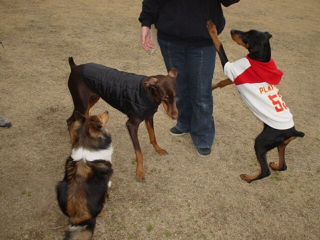 今日は、待ちに待った【ご対面の日♪】o(^▽^)oワクワク そのお相手とは?そう!!あずき家から車で30分の所にお住まいの・・・ 垂れ耳ブラック・ドベちゃん5ヶ月♂《オスカ~ちゃま》&オ~ナ~様のShinobuさん♪ オスカ~宅の近所に出来た“ドッグラン”で、待ち合わせ(;◎∇◎;)ドキドキ キンチョ~感漂う中。。。あずき家が一番に到着したっっっ!! 興奮バフバフの小悪魔ちゃん...すでに疲労困憊のツチノコ...( ̄- ̄;)オイオイ 母は、我ながら小馬鹿な二匹を眺め…フリ~ズ(-_-)ピキッ 一人、浮かれ気分で鼻歌混じりの。。。のび太(; ̄▼ ̄A)冷汗 そんな、お間抜け家族が…それぞれの野望を抱き待っているとぉーーーー(°▽°;)オォ 到着されました~~~♪♪オスカ~ご一行様(☆▽☆)キラキラ 車から、飛び跳ねて降りてくる姿は。。。パピ~~~~そのものo(≧▽≦)oウキョ Shinobuさんに連れられ、《バンビ走り》でご到着(⌒m⌒)フフ 初対面のShinobuさん・・・母はドキドキ(;◎◇◎;)キンチョ~ しかぁ~~~し!!『こんにちわぁ~(^O^)/』と満開の笑顔。。。なんとも優しい感じの方♪♪ 母も嬉しくなって。。。子供のように、小悪魔ちゃんと走って行った(;^~^;)ヒヒ オスカ~は、少しキンチョ~しながら小悪魔ちゃんを見つめてる(P-゜;)ジィーーー 小悪魔ちゃんは、獲物を見つけた《野獣》のように…鼻息荒くバッフゥ~~~ン(≧◎◎≦)ブヒ そんな二匹だったけど。。。いざ近づけてみると(@▽@)/オォーーー オスカ~は、小悪魔ちゃんをシゲシゲと匂いチェック☆ 小悪魔ちゃんも、オスカ~を優しく『バフバフ』とチェック☆ なんともGOODな対面に、母もShinobuさんと嬉しく話が弾む♪♪ そんなこんなで、いざドッグランに突入(¬◇¬)/ゴ~ 走りたいばっかりの小悪魔ちゃん&疲労の漂うツチノコ&バンビのオスカ~...従え(* ̄m ̄)クク あずき家も、はじめてのドッグランに入って行った!!! あずき家から、車で30分かからないドッグラン(゜-゜)ウンウン なぁ~~~んと!!!店員さんは優しいし...ドッグカフェは併設されてるし... これまた、ランがメチャ広大で、ワンコの足に優しい芝なのだ♪♪ オフ会も出来るように、仕切りがあって何ヶ所もスペ~スがあるし・・・ 少し傾斜がついていて。。。JUMP好きの小悪魔ちゃんにはもってこい(^O^)/ なんとも良いランが近所に出来たもんだ!!のび太と感動もんでした(⌒m⌒)ヒヒ さて・・・オスカ~と走って遊ぼうと思った時(ー_ー)ウゥン? ラン入口に。。。見たことのある怪しい影が4つ★★★★ そう♪皆様ご存知…小悪魔ちゃんの《舎弟》(≧m≦)ククク ライラ登場ぉ~~~~☆ ライラ家総出で、オスカ~とご対面にやって来てくれたのだ(^^ゞハッ ライラ母ちゃん♪いつもの如く、オスカ~見つけて爆裂(* ̄m ̄)ブッ その横で、可愛いライラ姉ちゃん&優しいライラ父ちゃん(⌒~⌒)ニコニコ やっと今日のメンバ~が揃った所で、ワンコ達をランに放牧(¬¬)//ソレ 分かってました!分かっておりました(≧m≦)ヒヒ ライラ→『小悪魔ちゃん狩り』に、ひたすら夢中☆ 小悪魔ちゃんが“ガウガウ、ムキッ”しても、小悪魔ちゃんの【金魚のウンP】(激爆) 母&ライラ母ちゃん…笑い転げて観察してました♪♪ ライラは、ライラ母ちゃんにソックリ。。。元気で明るくて、メゲナイ性格(⌒_⌒)ウンウン ライラ~♪小悪魔ちゃんも、ライラが可愛いと思ってるはずやでぇ~(^~^)ウン いつまでも、こういう二匹を見てたいと母は心から思いました♪♪ ところで。。。今日の主役『オスカ~坊主ちゃま』はといいますと・・・ なぁ~~~んと!おばあちゃんのツチノコが大好き(゜▽゜)ワァ~ 最後まで、ツチノコにちょっかいかけて遊んでおられました☆ Shinobuさんの足元を離れず…たまに悪コもしながら(^m^)ヒヒ 甘えん坊さんの、オスカ~坊主ちゃま!!パピパピ満開で、みんなの笑いを独占してました(^O^)/ 昼食は、みんなでラン横のドッグカフェで雑談(≧▽≦)ペチャクチャ オスカ~&Shinobuさんにとっては、はじめてカフェ体験(゜-゜)ウン Shinobuさんのキンチョ~が、母にも伝わってくるぅ~~~(>∇<)/ でも。。。パピちゃんにしては『バッチシ100点(^▽^)b』だったよ!! 小悪魔ちゃんとライラの…静かな冷戦を観察する、オスカ~坊主ちゃま(≧m≦)ヒヒ なんとも可愛いお顔で、ドングリおめめなのぉ~~~(*^▽^*)キャワイイ♪ 母は、食事中もオスカ~から目が離れない(P~^)ジィーーーー みんなで楽しい食事&おしゃべり…ワンコ達の可愛さ・・・ ホントに楽しい一日を、あずき家は満喫する事が出来ました♪♪ Shinobuさん。。。今日は本当にありがとうございましたm(__)m 母は久しぶりに、パピ・ドベちゃんの可愛さを堪能出来ました(^m^)ヒヒ オスカ~君の、耳を“パッタン、パッタン”させて走る姿!!! 母は…小悪魔ちゃんのパピ~時代と、オスカ~を重ね合わせて見てたぁ~(⌒~⌒)ウンウン オスカ~はドッグランでも、カフェでも良いコだったよ♪♪ 母&のび太。。。オスカ~を見て、ホンマに感心したもん(゜▽゜)ウン Shinobuさん...オスカ~...また、是非遊んで下さいネ(*^▽^*)/ ライラ家の皆様!!今日の小悪魔ちゃんの大